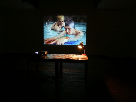 The work To the Bone is documented in a series of photographs by Boris Cvjetanović at the Mladost swimming pool in Zagreb, where I am teaching my mother to swim, and in a series of my mother’s photos of me taken while I was getting back to health.